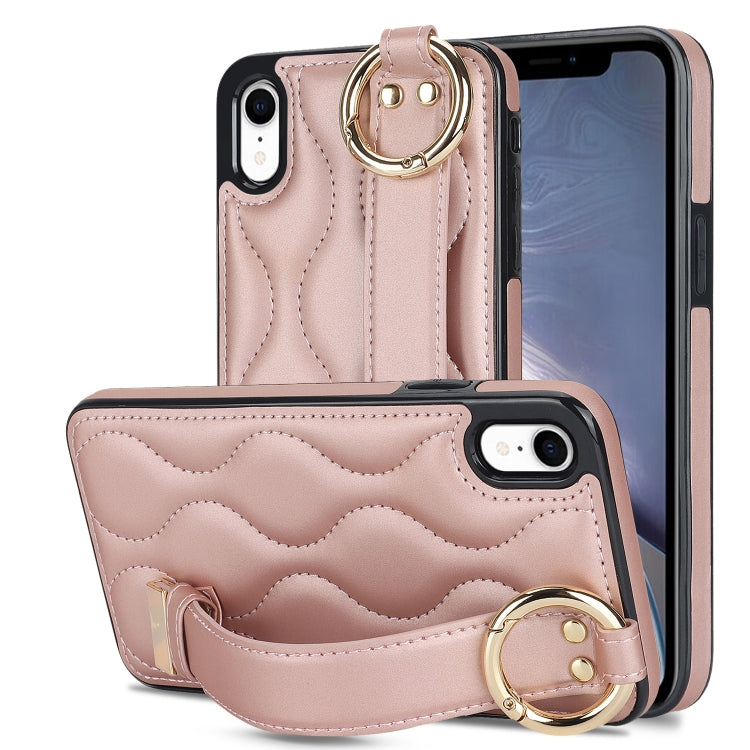 Funda para iPhone Xr Antideslizante de PU con Anillo y Muñequera (Oro Rosa)