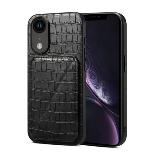 Funda Trasera para iPhone Xr Piel de Cocodrilo de Imitación con Soporte (Negro)