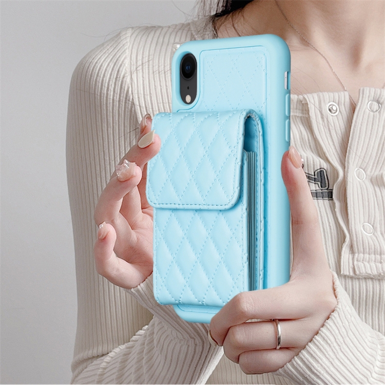 Funda para iPhone Xr Vertical Wallet Rhombic Leather Phone Case (Azul)