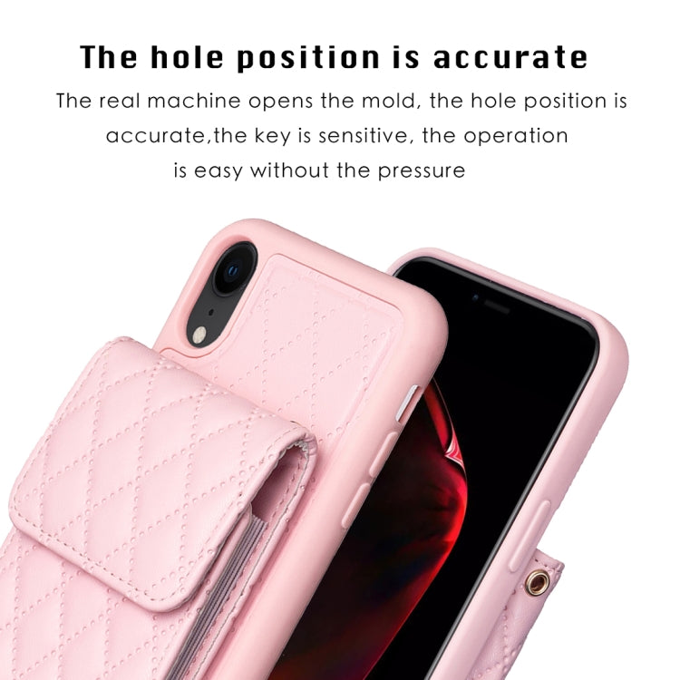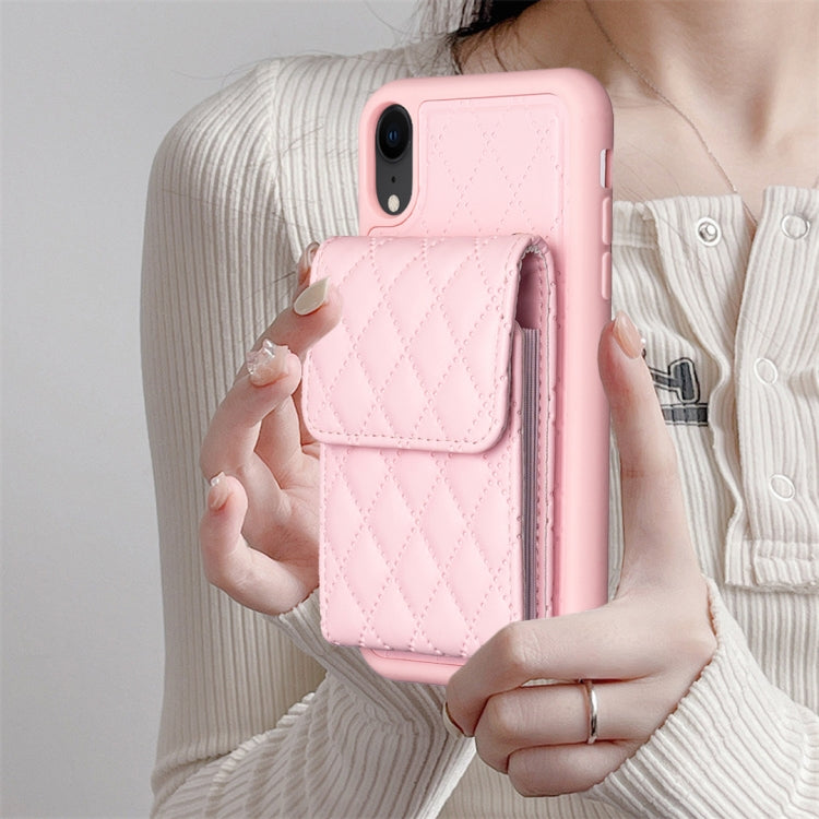 Funda para iPhone Xr Vertical Wallet Rhombic Leather Phone Case (Rosa)