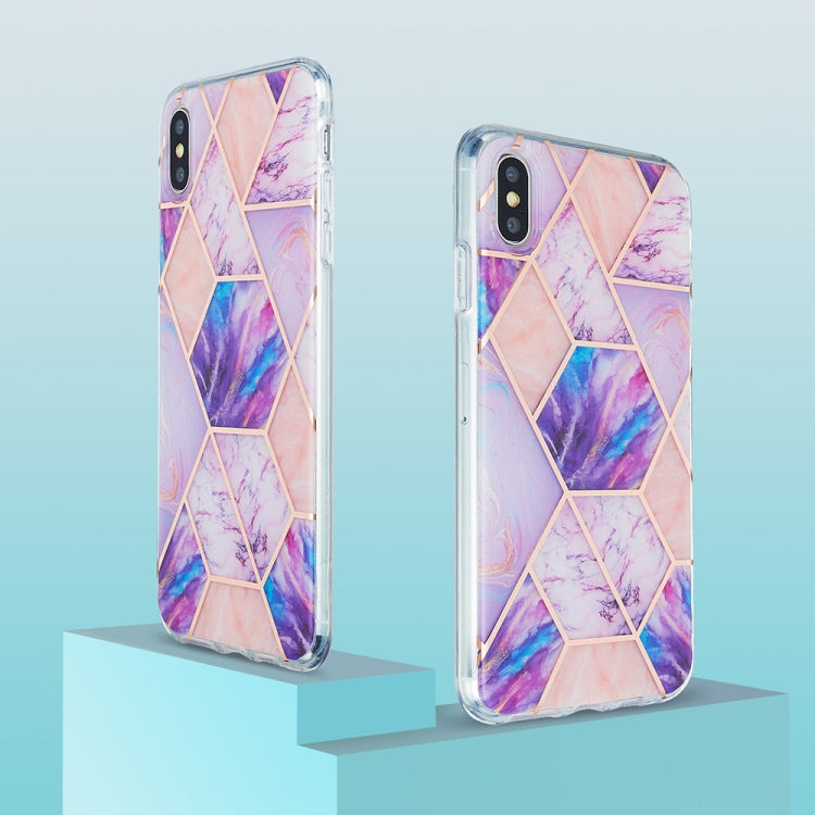 Funda Protectora TPU iPhone Xs Max 3D Galvanoplastia Patrón Mármol (Rosa Púrpura)