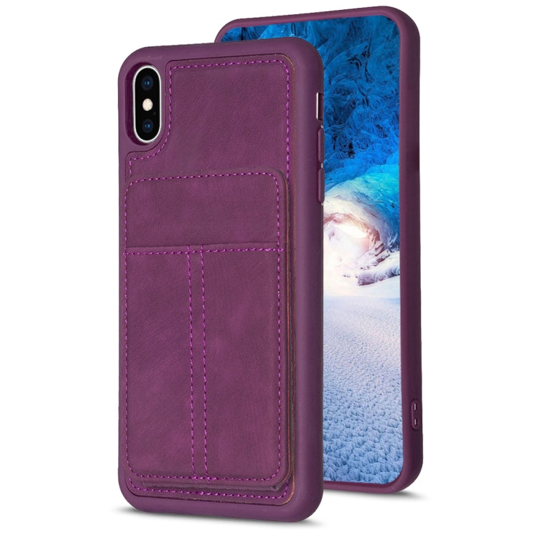 Estuche para Teléfono Bf28 para iPhone Xs Max con Bolsa para Tarjeta Esmerilada y Soporte (Púrpura Oscuro)