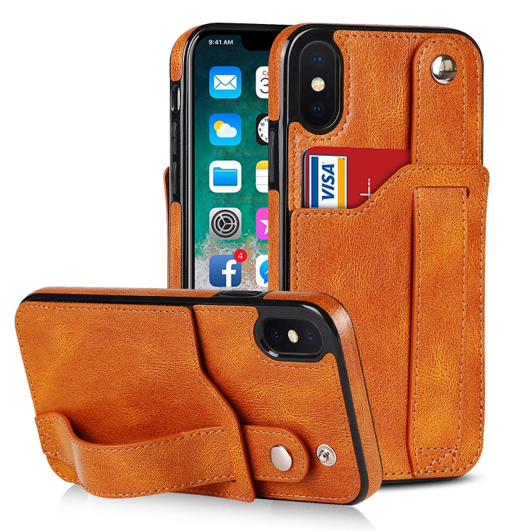 Funda para iPhone Xs Max Crazy Horse Texture Cuero TPU + PU a Prueba de Golpes con Ranura para Tarjeta y Correa para la Muñeca (Amarillo)