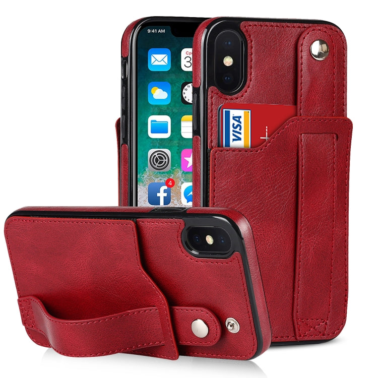 Funda para iPhone Xs Max Crazy Horse Texture Cuero TPU + PU a Prueba de Golpes con Ranura para Tarjeta y Correa para Muñeca (Rojo)