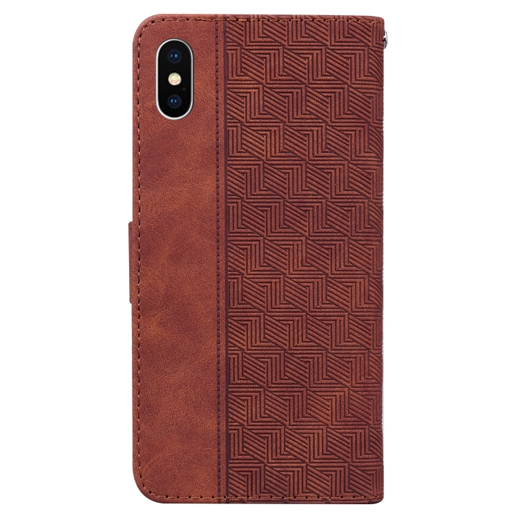 Estuche de teléfono iPhone Xs Max cuero en relieve geométrico (Marrón)