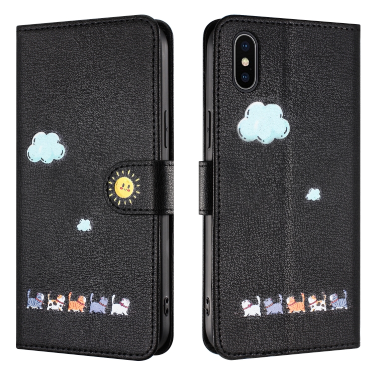 Funda para Teléfono iPhone Xs Max Cuero Gatos Dibujos Animados (Negro)