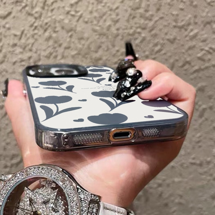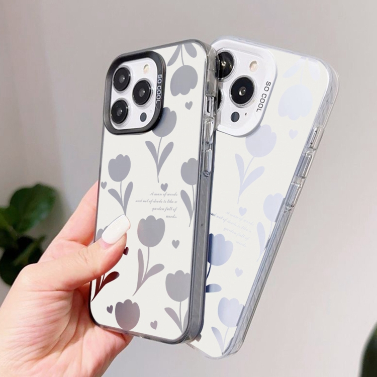 Funda híbrida para iPhone Xs Max TPU con pintura plateada para PC (Tulipanes huecos negros)