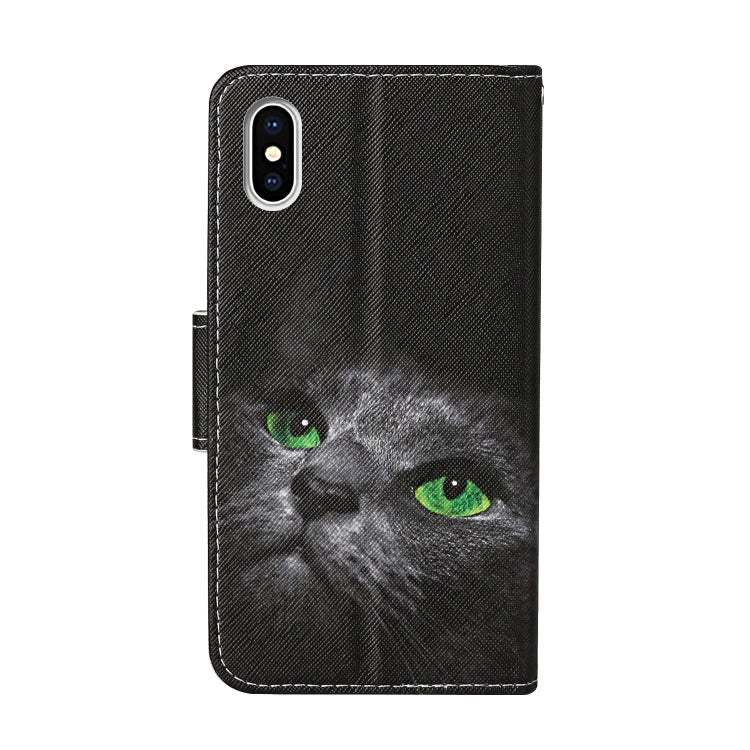 Estuche de Cuero para iPhone Xs Max con Patrón de Dibujo, Tapa Horizontal, Soporte y Ranuras para Tarjetas (Gato Negro)