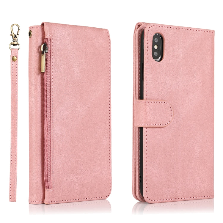 Estuche para iPhone Xs Max Skin-Feel Crazy Horse Texture Zipper Wallet Bag con Tapa Horizontal, Soporte, Ranuras para Tarjetas y Cordón (Oro Rosa)