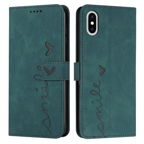 Funda para iPhone Xs Max Skin Feel Heart Pattern de Cuero (Verde)