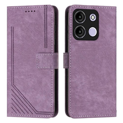 Funda de Cuero para Itel A60S con Patrón de Rayas y Cordón (Púrpura)
