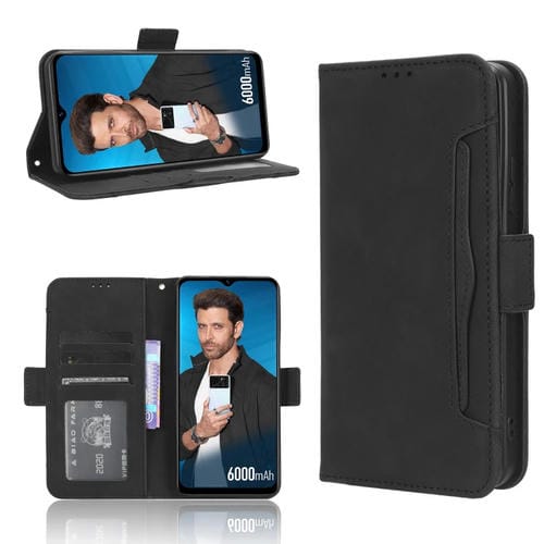 Funda de Cuero para Itel P40 con Textura Becerro y Ranuras para Tarjetas (Negro)