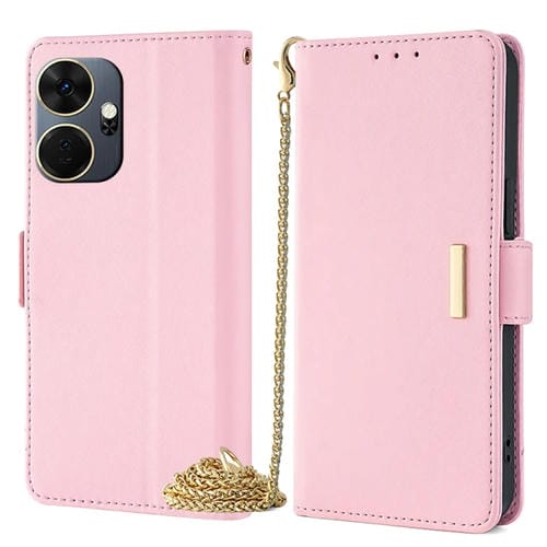 Funda de Cuero para Itel P55 + 4G con Cadena Cruzada (Rosa)