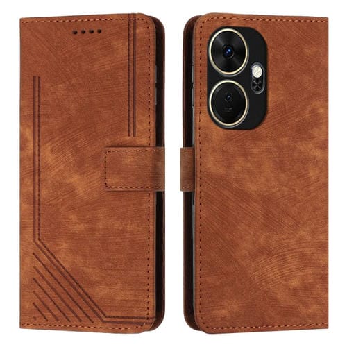 Funda de Cuero Skin Feel para Itel P55 con Patrón de Rayas y Cordón (Marrón)