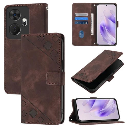 Funda de Cuero Skin Feel para Itel P55 en Relieve (Marrón)