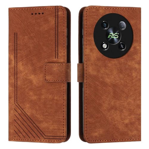 Funda de Cuero Itel Rs4 Skin Feel con Patrón de Rayas y Cordón (Marrón)