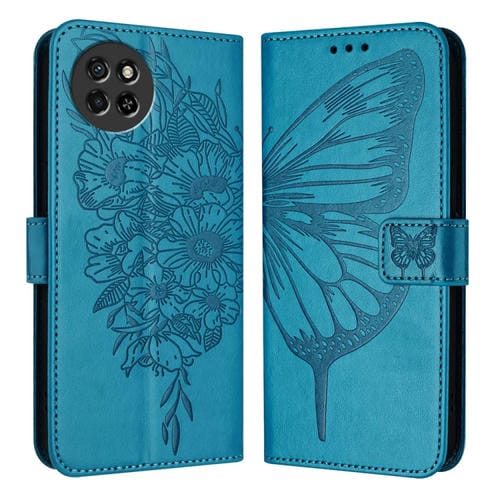 Funda de Cuero para Itel S23 con Mariposa en Relieve (Azul)