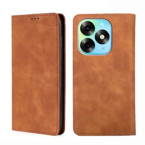 Funda de Cuero Magnética Skin Feel para Itel S23 Plus 4G (Marrón Claro)