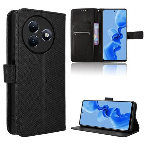 Funda de Cuero para Itel S24 4G con Textura de Diamante (Negro)