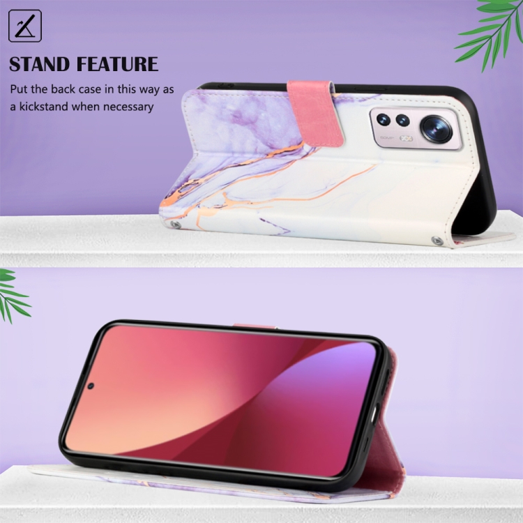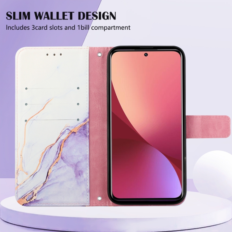 Para la caja del teléfono de cuero Flip de patrón de mármol Xiaomi 12 lite (White Purple LS006)