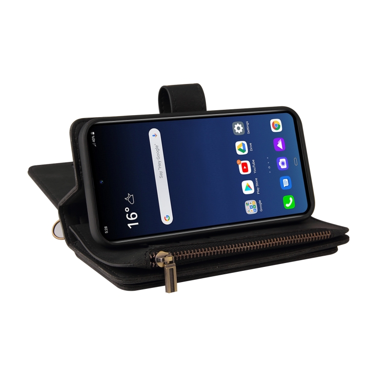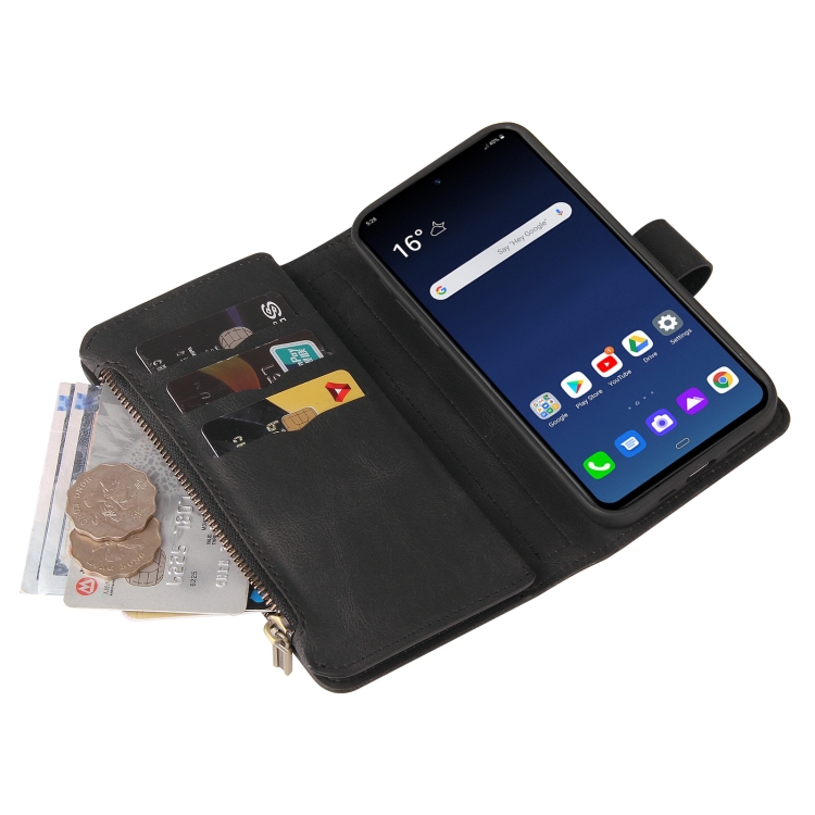 Funda de Cuero Horizontal Flip para LG G9 Velvet con TPU, Titular, 15 Tarjetas, Wallet y Lanyard (Negro)