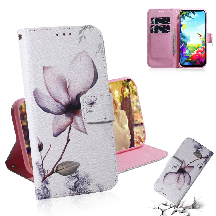 Estuche de Cuero para LG K40S con Tapa Magnética, Soporte, Ranura para Tarjeta y Billetera (Flor de Magnolia)