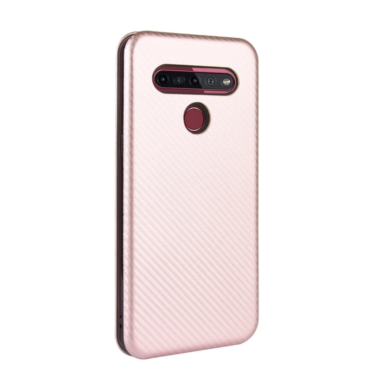 Funda Flip Horizontal para LG K41S / K51S con Textura Fibra de Carbono, TPU + PC, Ranura para Tarjeta (Rosa)