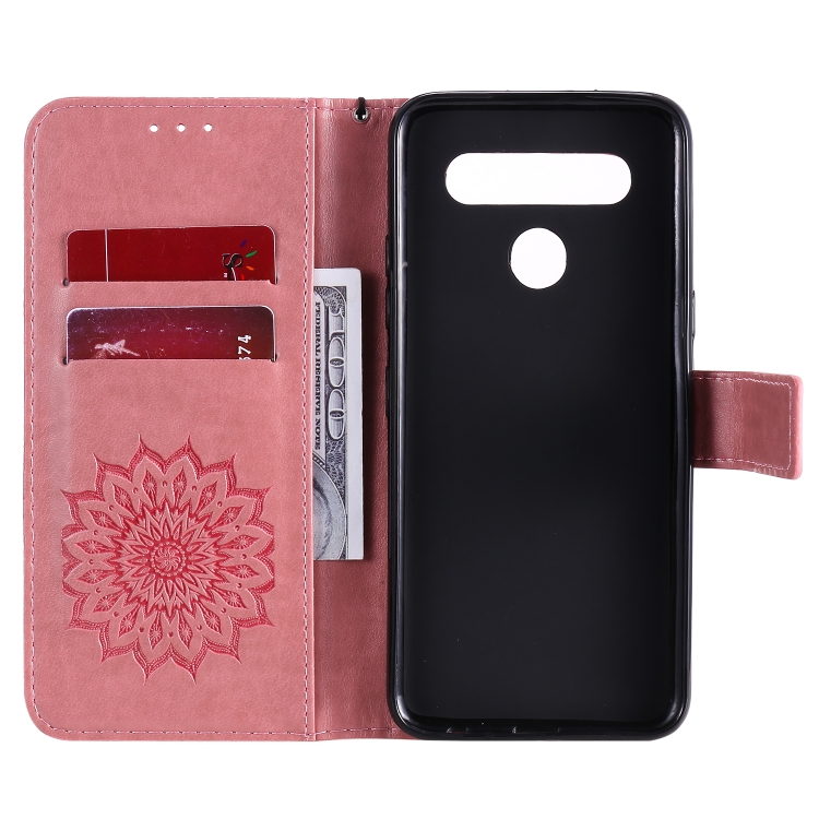 Funda de Cuero PU para LG K41S y K51S con Patrón Girasol, Tapa Horizontal, Soporte y Ranuras para Tarjetas y Billetera