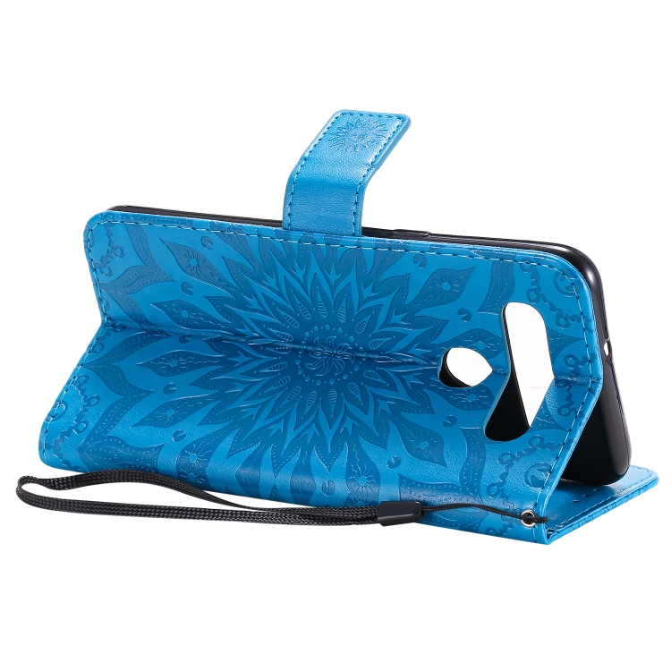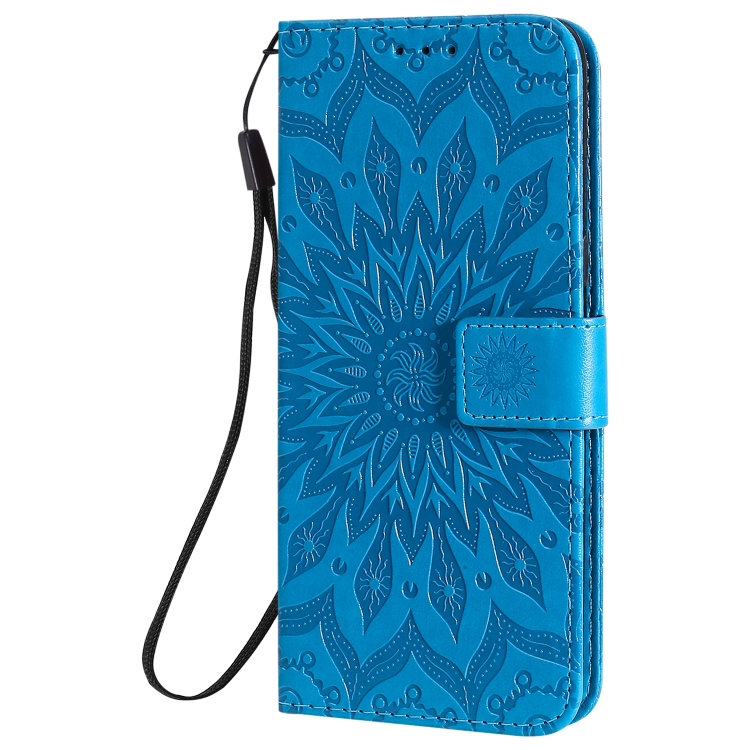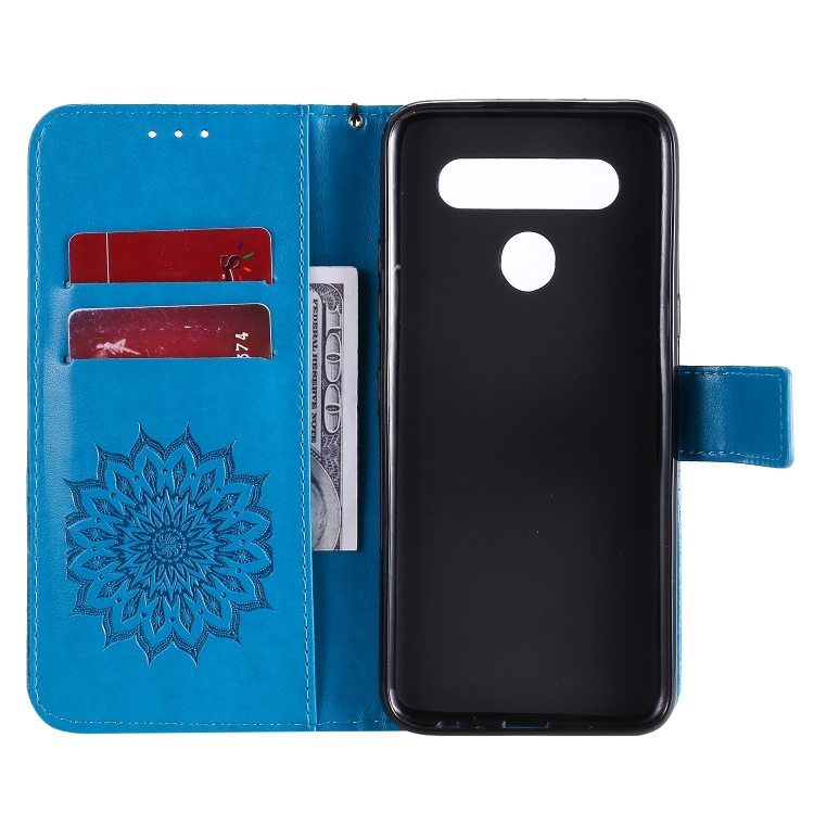 Funda de Cuero PU para LG K41S y K51S con Patrón de Girasol, Soporte, Ranuras y Cordón (Azul)