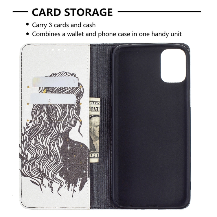 Funda de Cuero PU para LG K42 con Patrón Invisible, Soporte, Tragamonedas y Billetera (Niña)