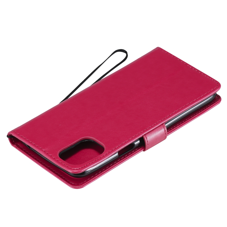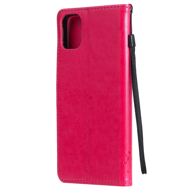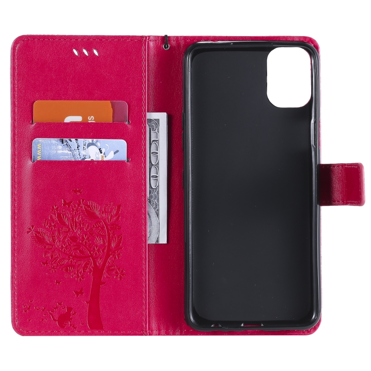 Funda de Cuero PU para LG K42 con Patrón Tree & CAT, Titular, Billetera y Cordón (Rose Rojo)
