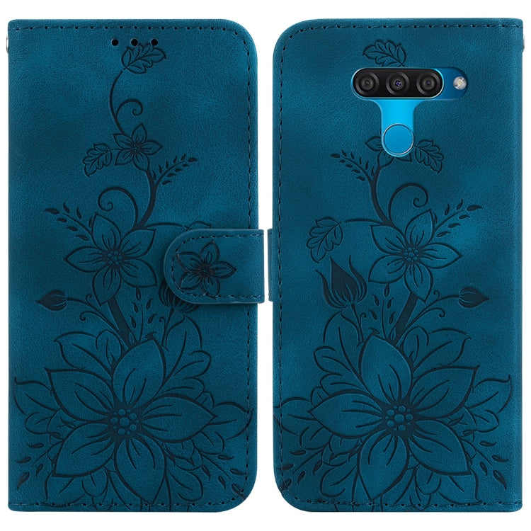 Funda para Teléfono LG K50 Q60 de Cuero con Relieve Lily (Azul Oscuro)