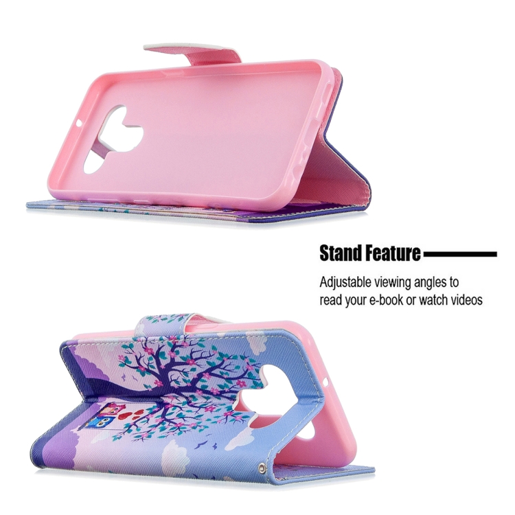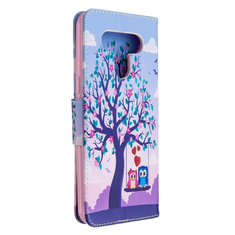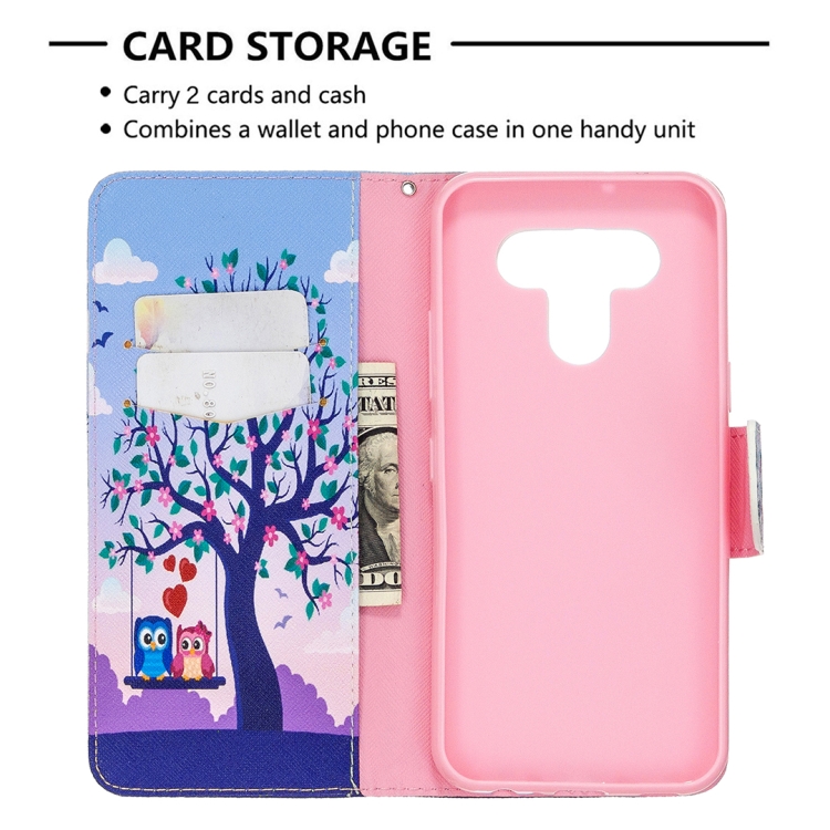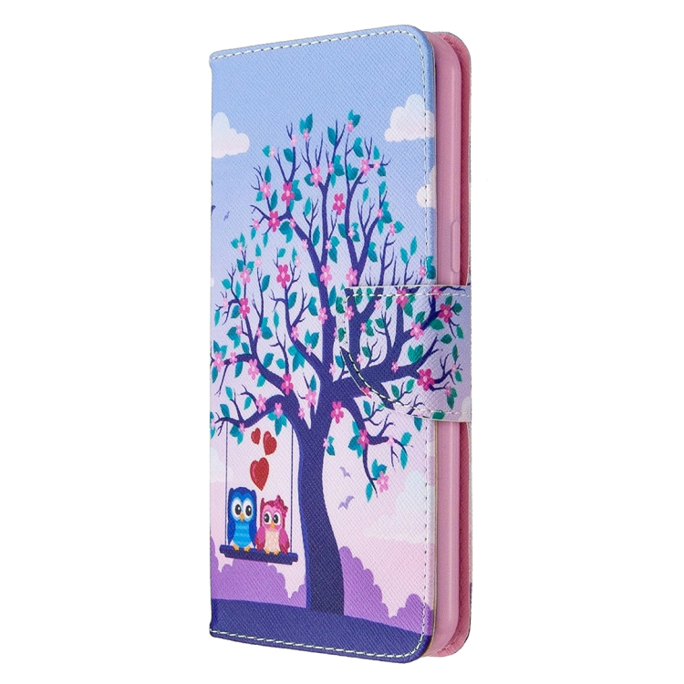 Estuche de Cuero para LG K51 con Tapa Horizontal, Soporte, Ranuras para Tarjetas y Billetera (Dos Búhos)