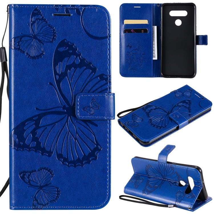 Funda de Cuero para LG K51 con Tapa Horizontal, Patrón Mariposa 3D, Soporte, Ranura Tarjeta, Billetera y Cordón (Azul)