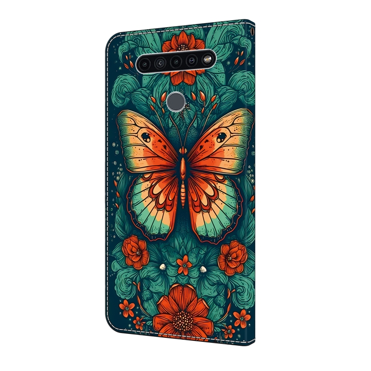 Funda de Cuero para LG K51 con Cristales y Diseño Mariposa de Flores