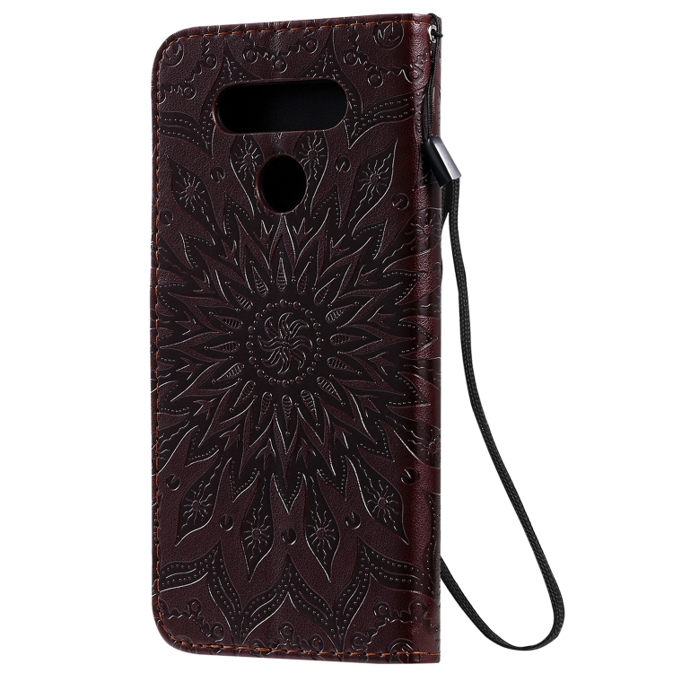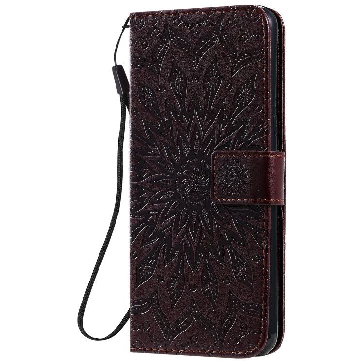 Funda de Cuero PU para LG K51 con Patrón de Girasol, Flip Horizontal, Soporte, Ranuras para Tarjetas y Cordón