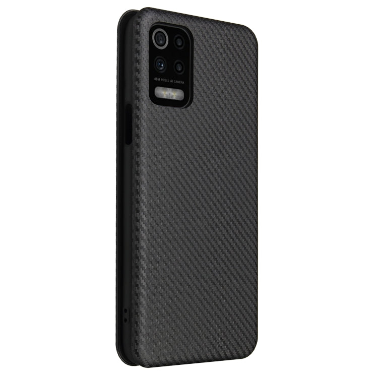 Funda para LG K52 / K62 Textura Fibra de Carbono Magnética Flip Horizontal TPU + PC + Cuero PU con Ranura (Negro)