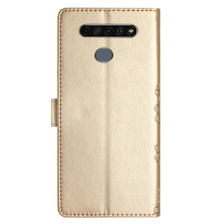 Funda para LG K61 Cherry Blossom Butterfly Skin Feel de PU en Relieve (Oro)
