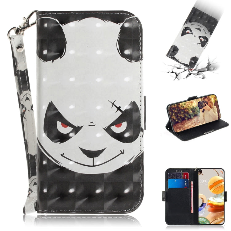 Funda de Cuero Abatible Horizontal para LG K61 con Dibujo 3D, Soporte, Ranuras para Tarjetas y Cordón (Oso Enojado)