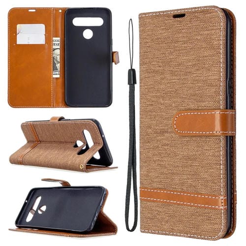 Funda de Cuero para LG K61 con Tapa Horizontal, Textura de Mezclilla, Soporte, Ranuras para Tarjetas y Cordón