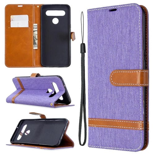Funda de Cuero para LG K61 con Tapa Horizontal, Textura de Mezclilla, Soporte, Ranuras para Tarjetas y Cordón