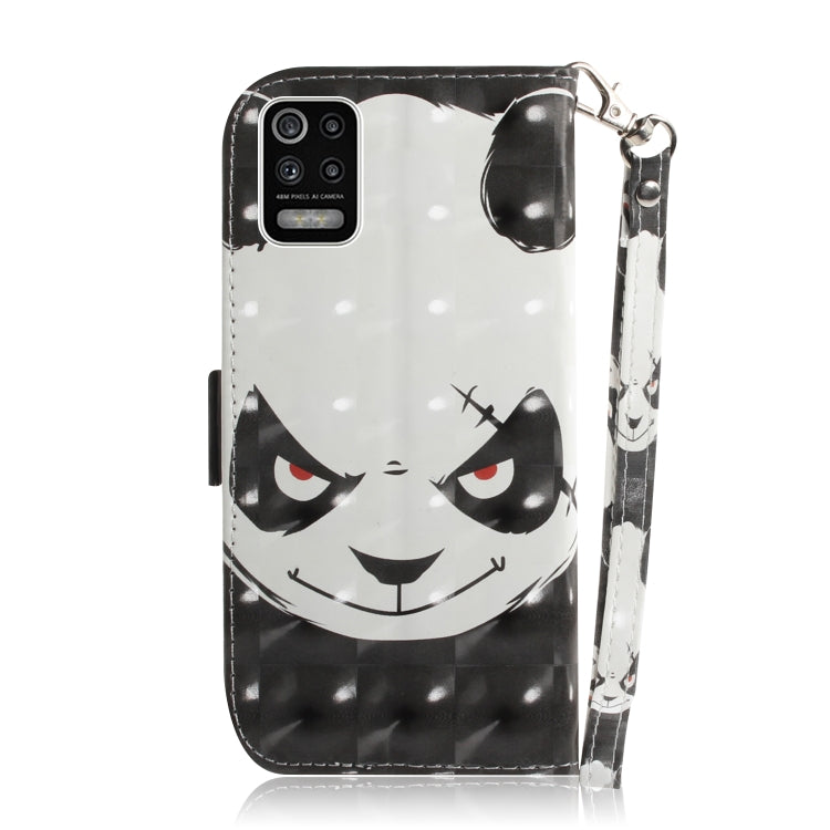 Funda de Cuero Abatible Horizontal para LG K62 K52 Q52 con Dibujo 3D, Soporte, Ranuras y Cordón (Oso Enojado)