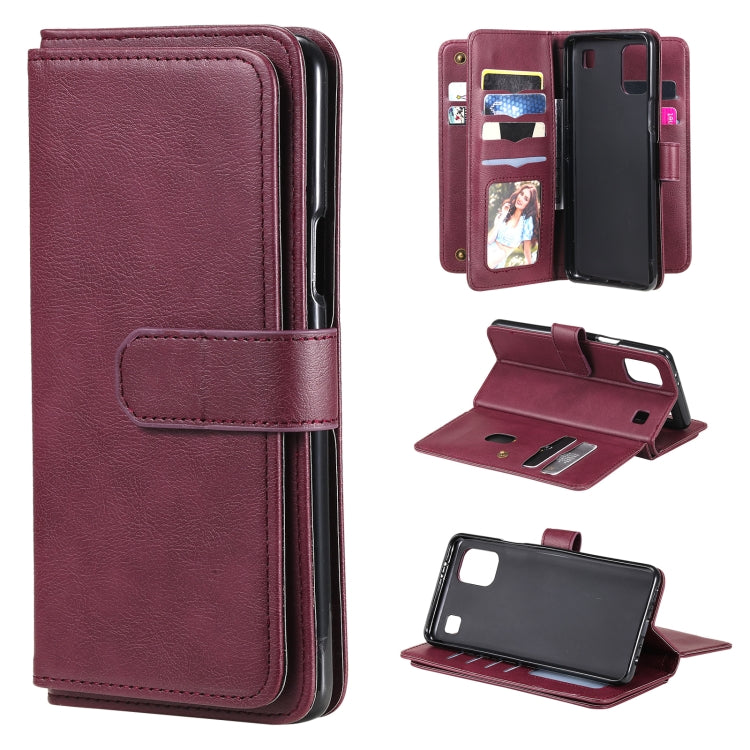 Funda Multifuncional LG K92 con Hebilla Magnética de Cobre, 10 Ranuras, Billetera y Soporte (Vino Rojo)