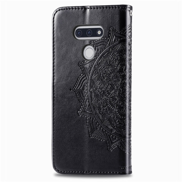 Funda de Cuero Mandala Flower para LG Style3 L-41A con Tapa Horizontal, Soporte, Ranura para Tarjeta y Cordón (Negro)
