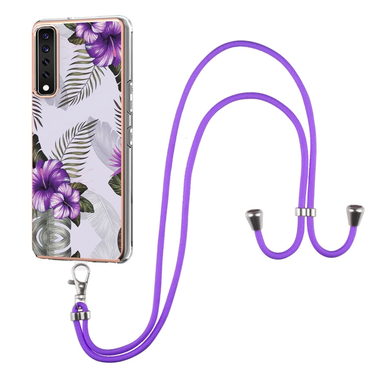 Funda TPU para LG Stylo 7 4G con Patrón Galvanoplastia IMD y Cordón (Flor Morada)
