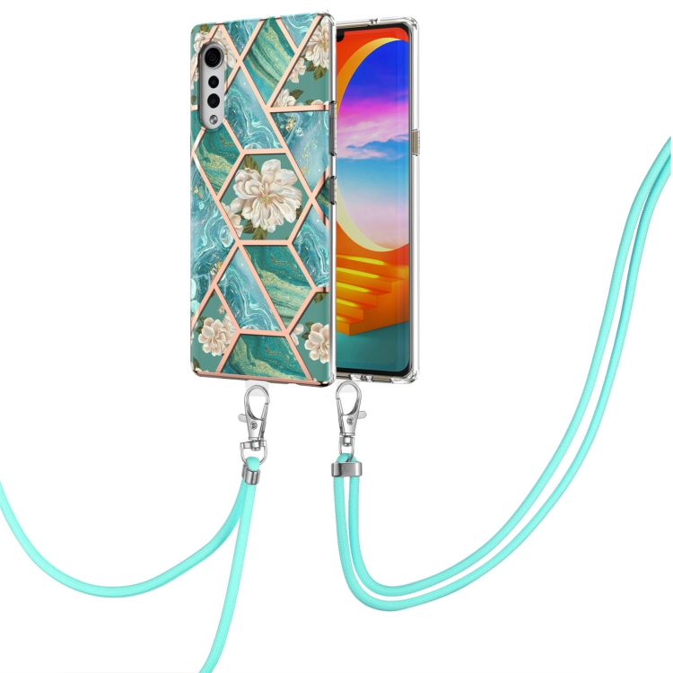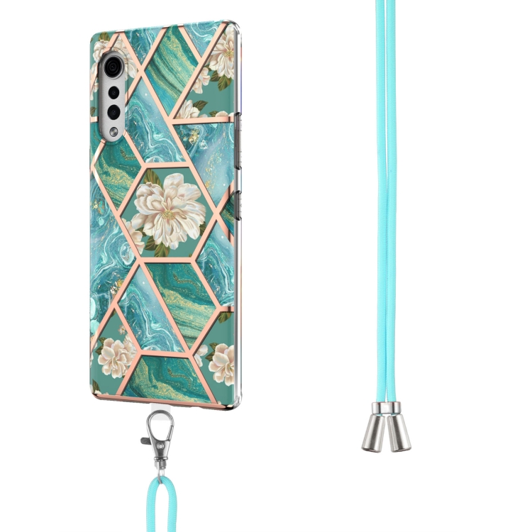 Funda TPU Electroplastación para LG Velvet 4G / Velvet 5G / G9 con patrón Flores Mármol y Cordón (Flor Azul)