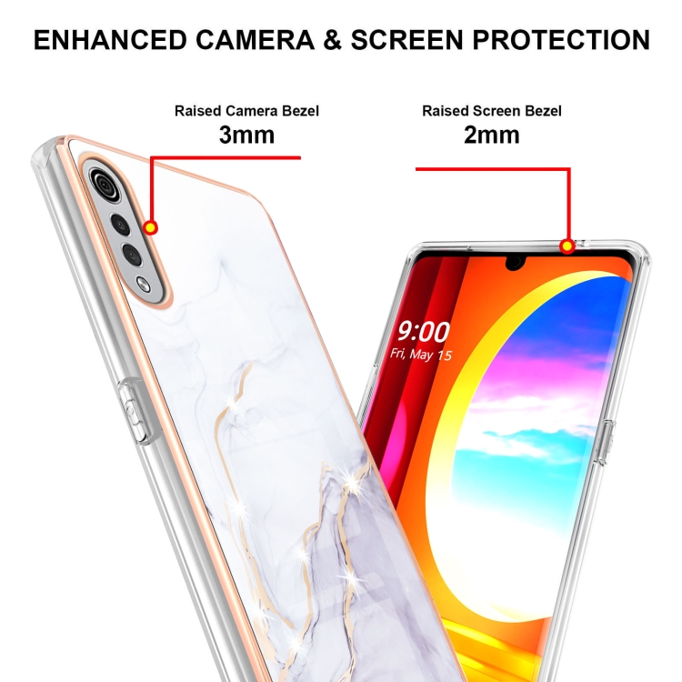 Funda TPU para LG Velvet 5G 4G con patrón Mármol Electrochaplating doble cara (Blanco)