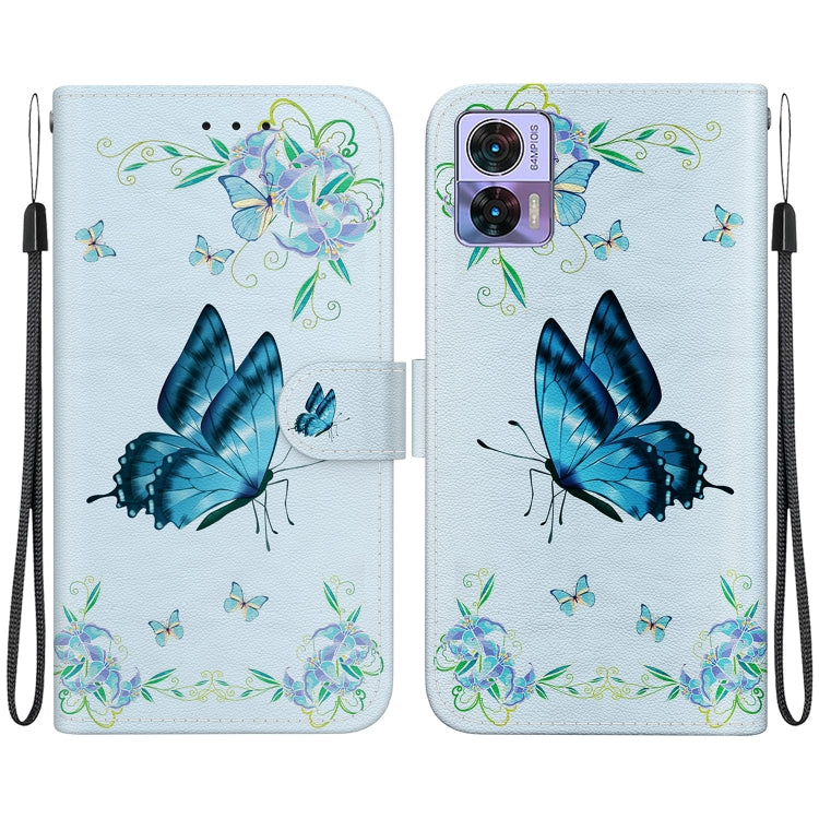 Funda de Cuero para Motorola Edge 30 Neo y 30 Lite con Dibujo Coloreado y Textura de Cristal (Pensamientos Azules)