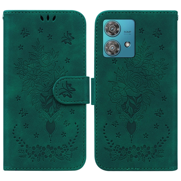 Funda de Cuero para Motorola Edge 40 Neo Butterfly Rose en Relieve (Verde)