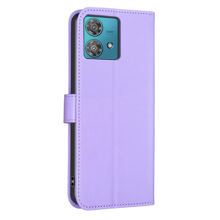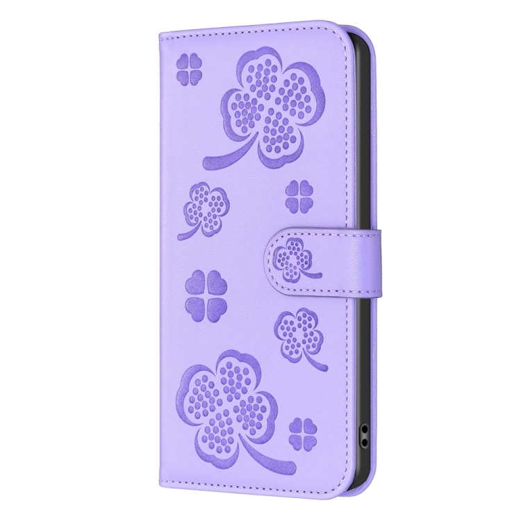 Funda de Cuero para Motorola Edge 40 Neo con Relieve de Cuatro Hojas (Púrpura)